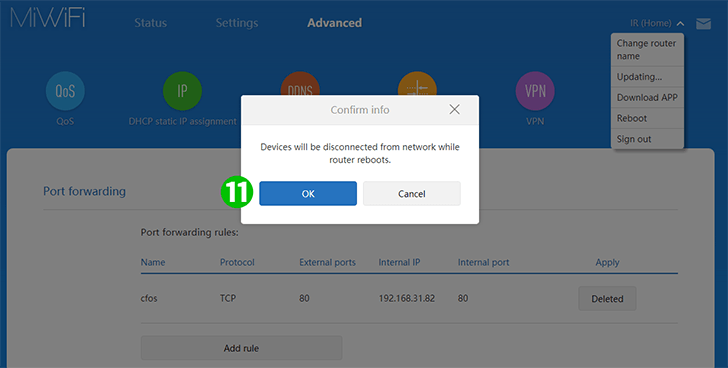 11 Націсніце на кнопку "OK" і пачакайце перазагрузкі маршрутызатара
