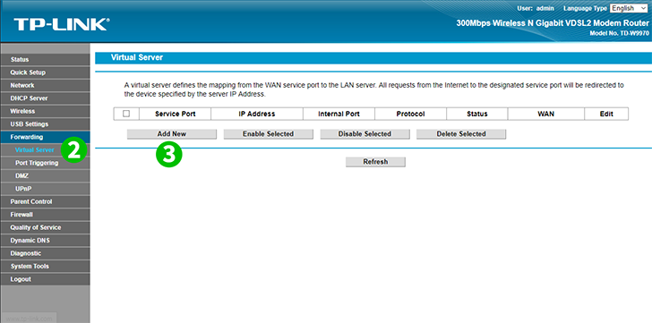Povolit přeposílání portů pro TP-LINK TD-W9970