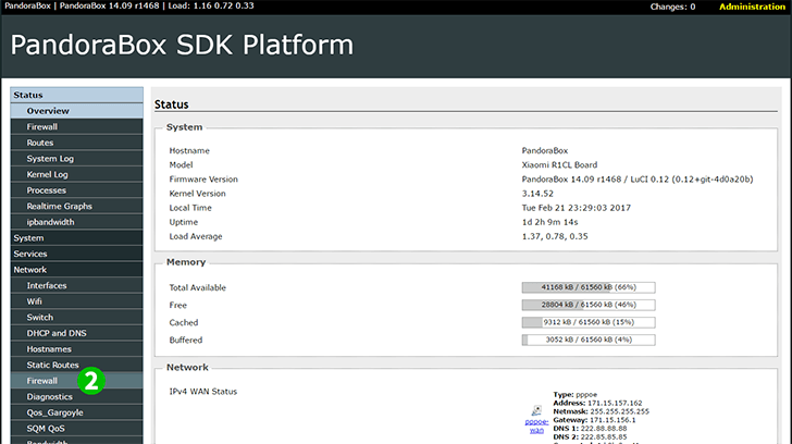 Ενεργοποίηση προώθησης θύρας για το Pandorabox SDK έκδοση 14.09