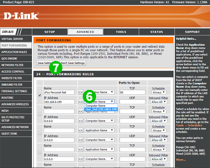 Овозможете го пренасочувањето на портата за D-Link DIR-825