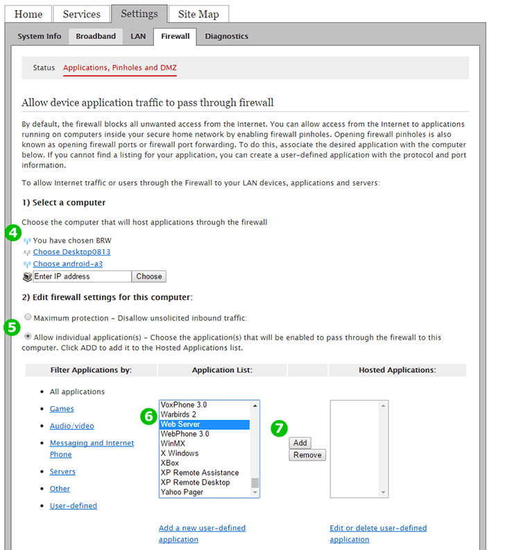 6 V "Application List" poiščite vnos "Web Server". Kliknite "Web Server"